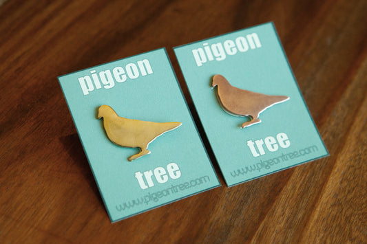 Solid Raw Copper or Brass Pigeon Logo Pin