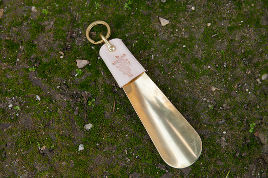 Large 6" Japanese Brass Shoe Horn with Leather Wrap and Brass Shackle