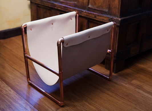 Raw Copper Pipe & Vegtan Leather Magazine/Record Stand