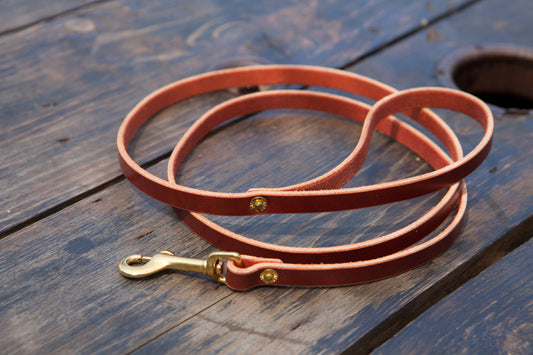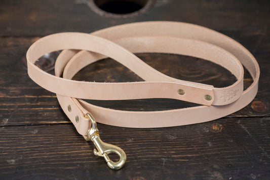1" or 3/4" Natural Vegtan or Black Leather Dog Leash 5' with Brass Hardware - Made to Order