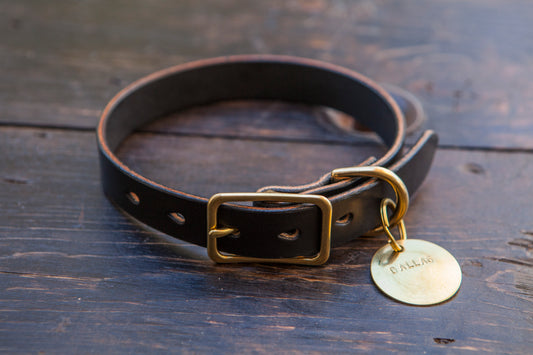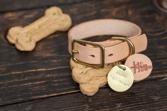 1" or 3/4" Natural Vegetable Tanned Leather Dog Collar - Custom Made to Order