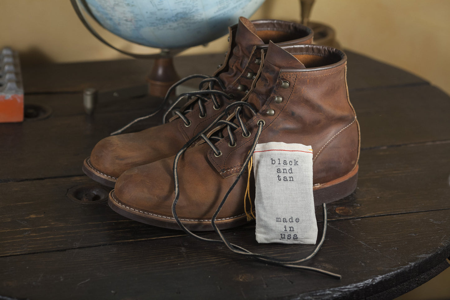 These laces are hand cut from the same full grain english bridle leather that I make my belts out of. It's a black leather, but the core is natural, so it has a really great two tone effect. Enhance your boots with these awesome made in USA laces!