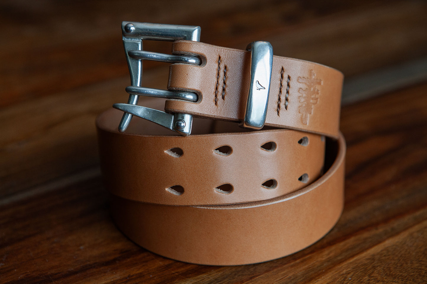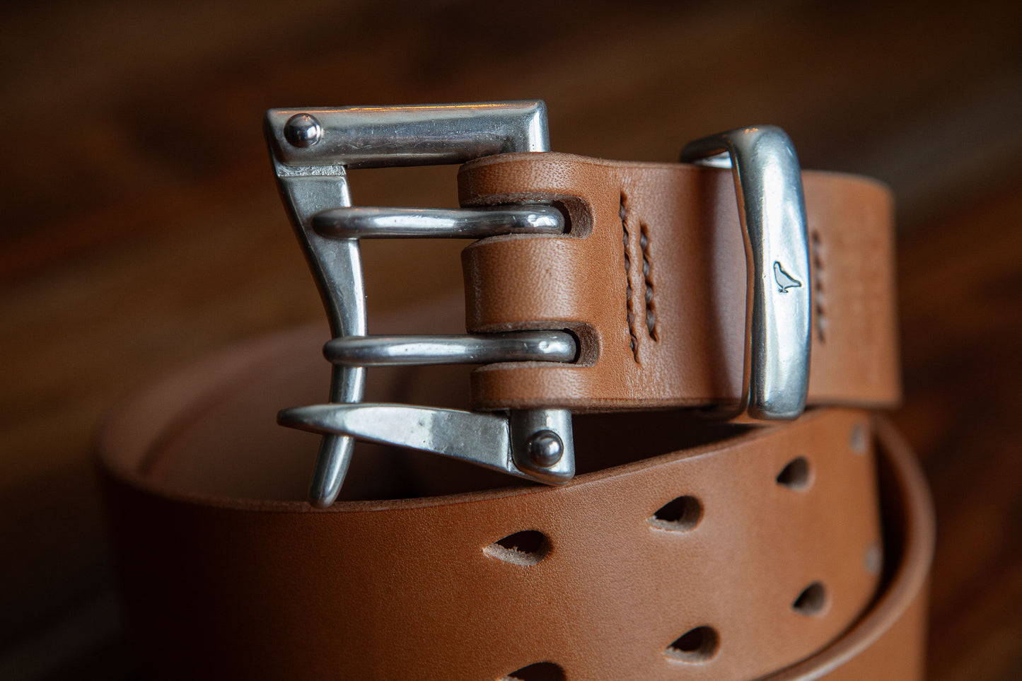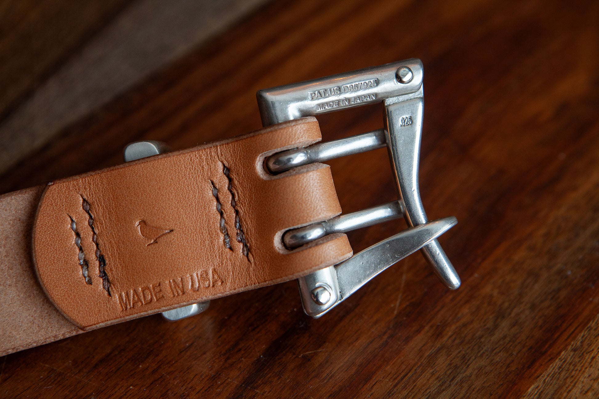 You can pair any leather that is currently available on my website with this hardware, simply add your preference next to your measurement notes, or if you want to secure a belt and haven't decided on a leather yet, you can leave your leather preference blank and decide later. Also available exclusively with the Sterling & Copper releases is a selection of Tochigi leathers. Pictured (in order): Summer Oil Natural, Summer Oil Camel (Sold Out), Summer Oil Black, and Friese Chocolate. All weigh in at around 9-10oz.