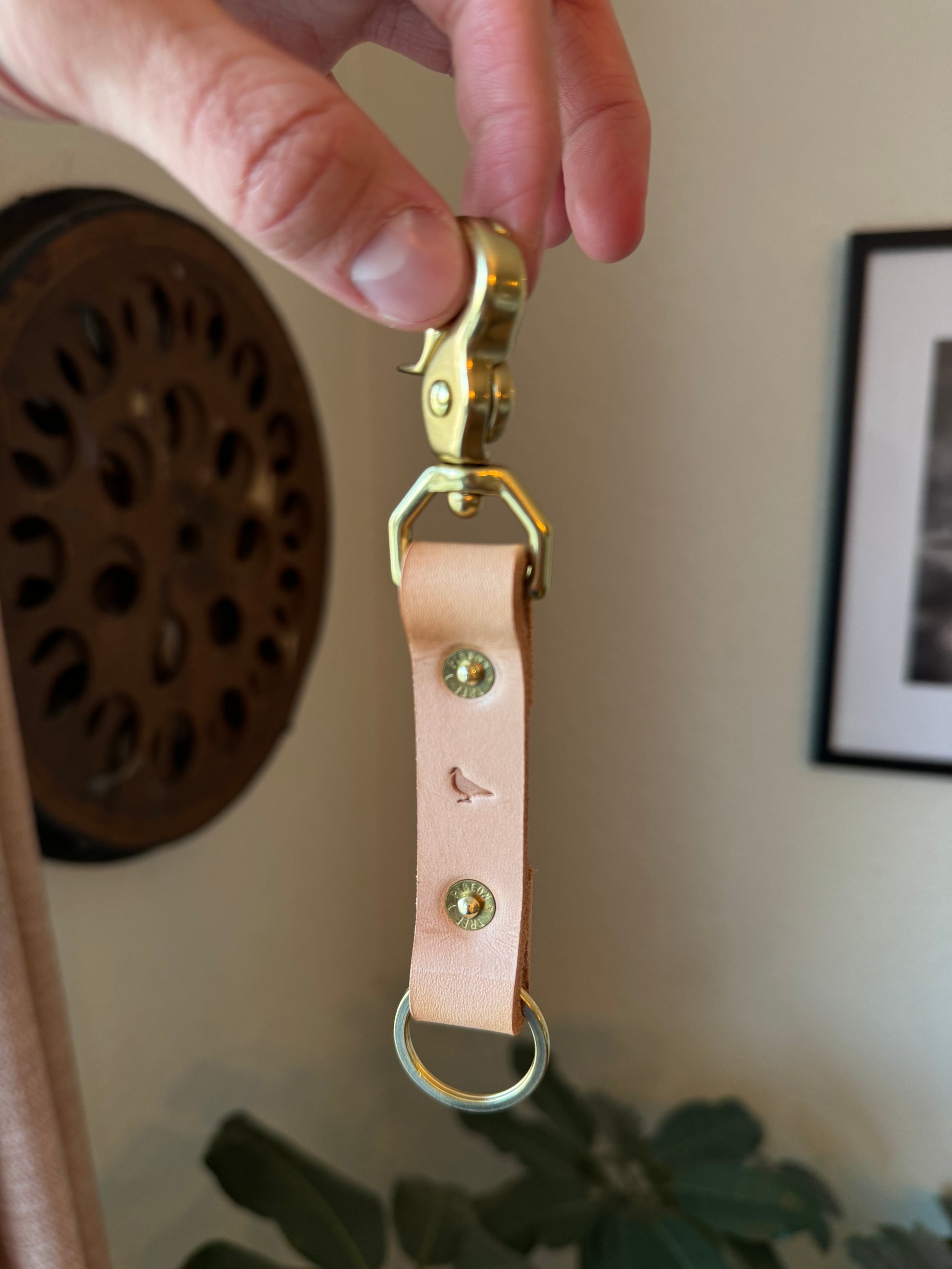 Natural Vegetable Tanned Leather Beltfob Keychain with Brass Hardware
