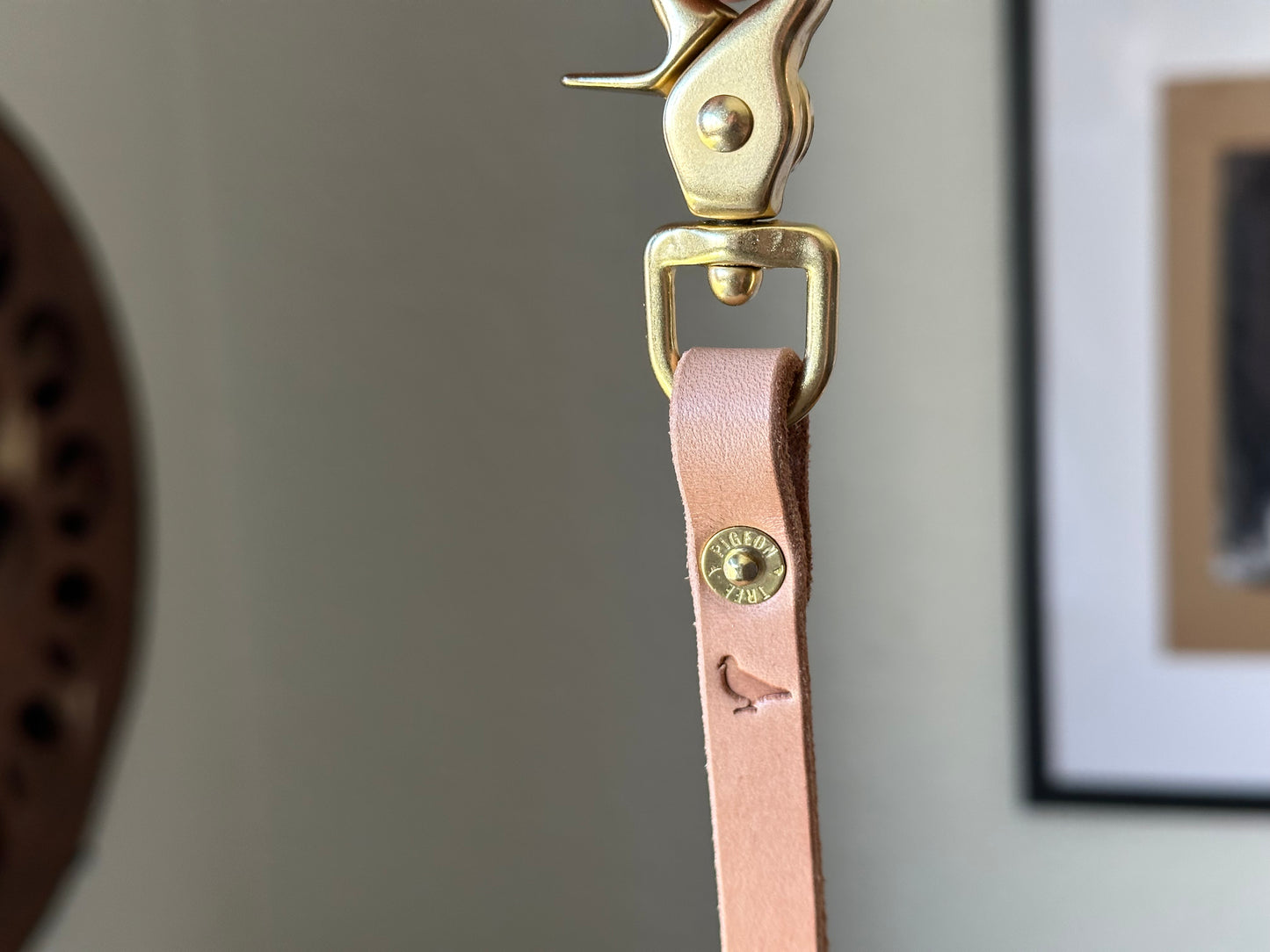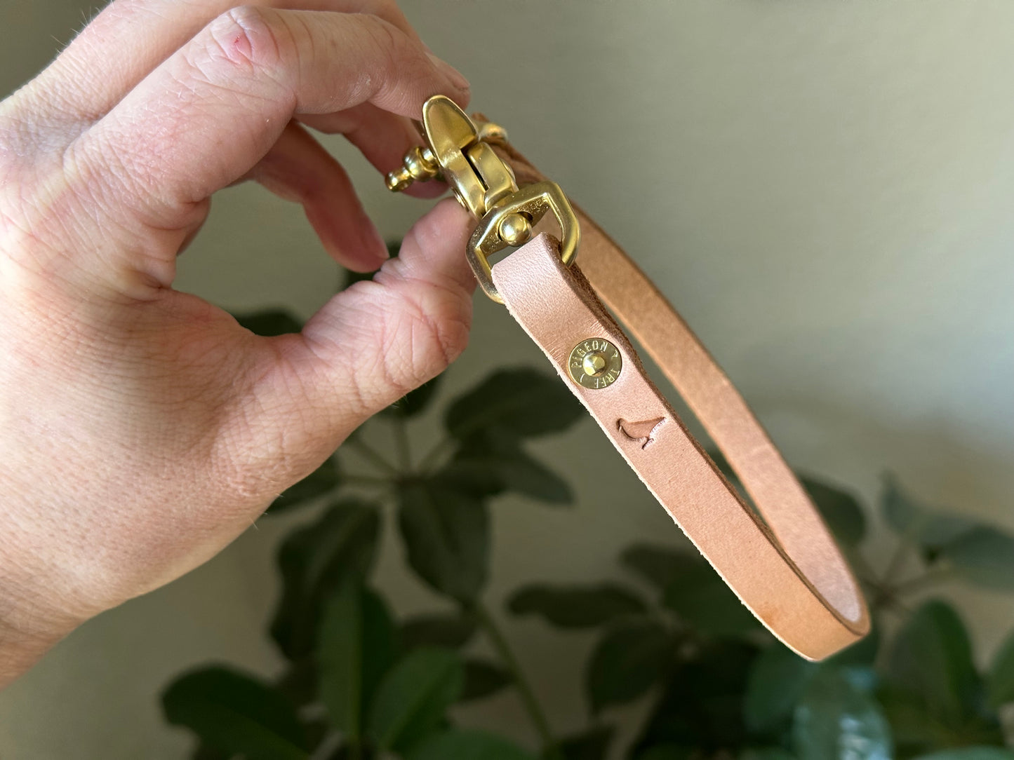 The brass screw shackle keeps a secure hold on your wallet, while the scissor snap attaches easily to your belt loop. Comes stamped with my signature pigeon stamp and pigeon tree stamped rivets.
