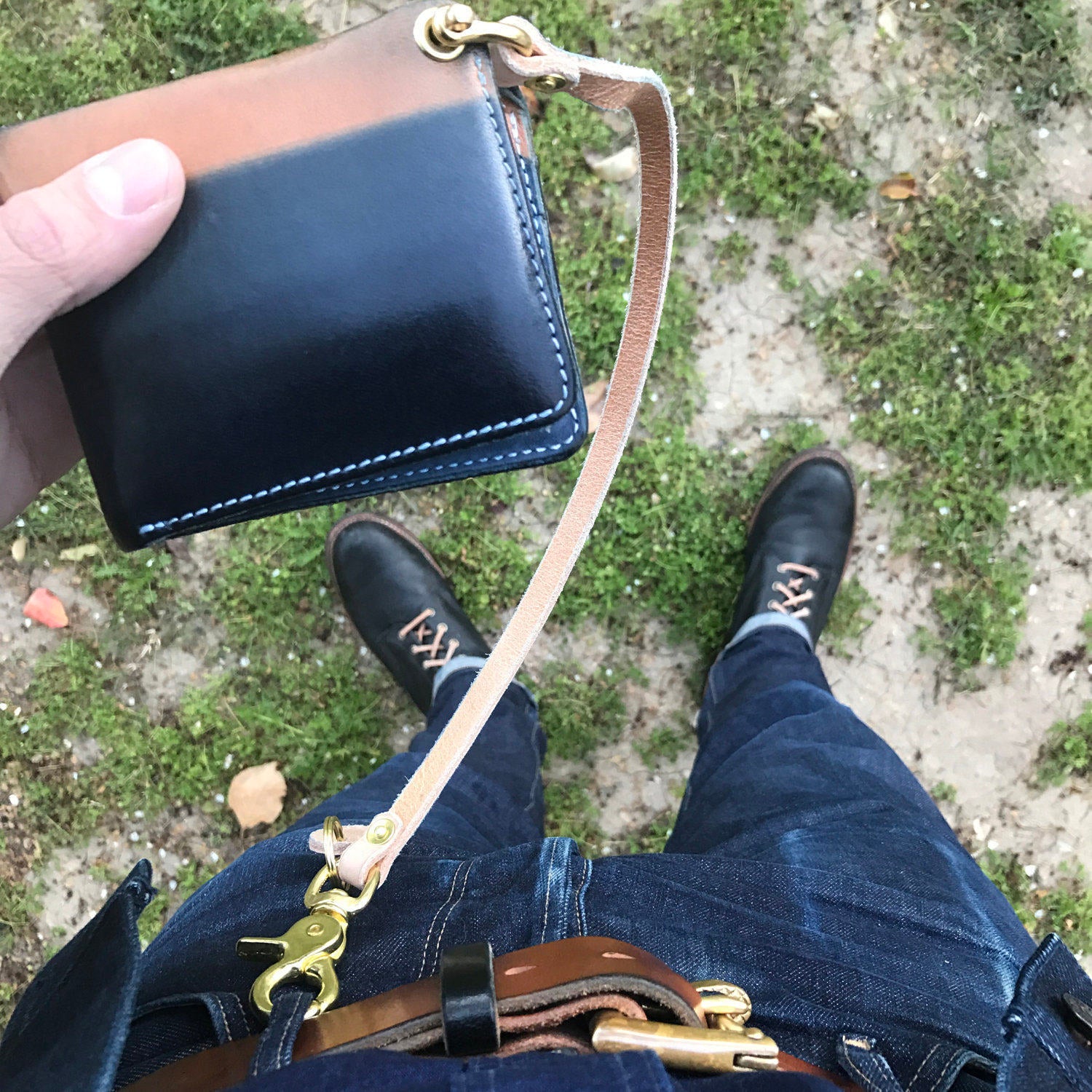 *The example pictured with the wallet is my personal one after a couple of weeks of use, it is already beginning to darken and stain with indigo from my jeans. *Indigo dipped wallet sold separately!*