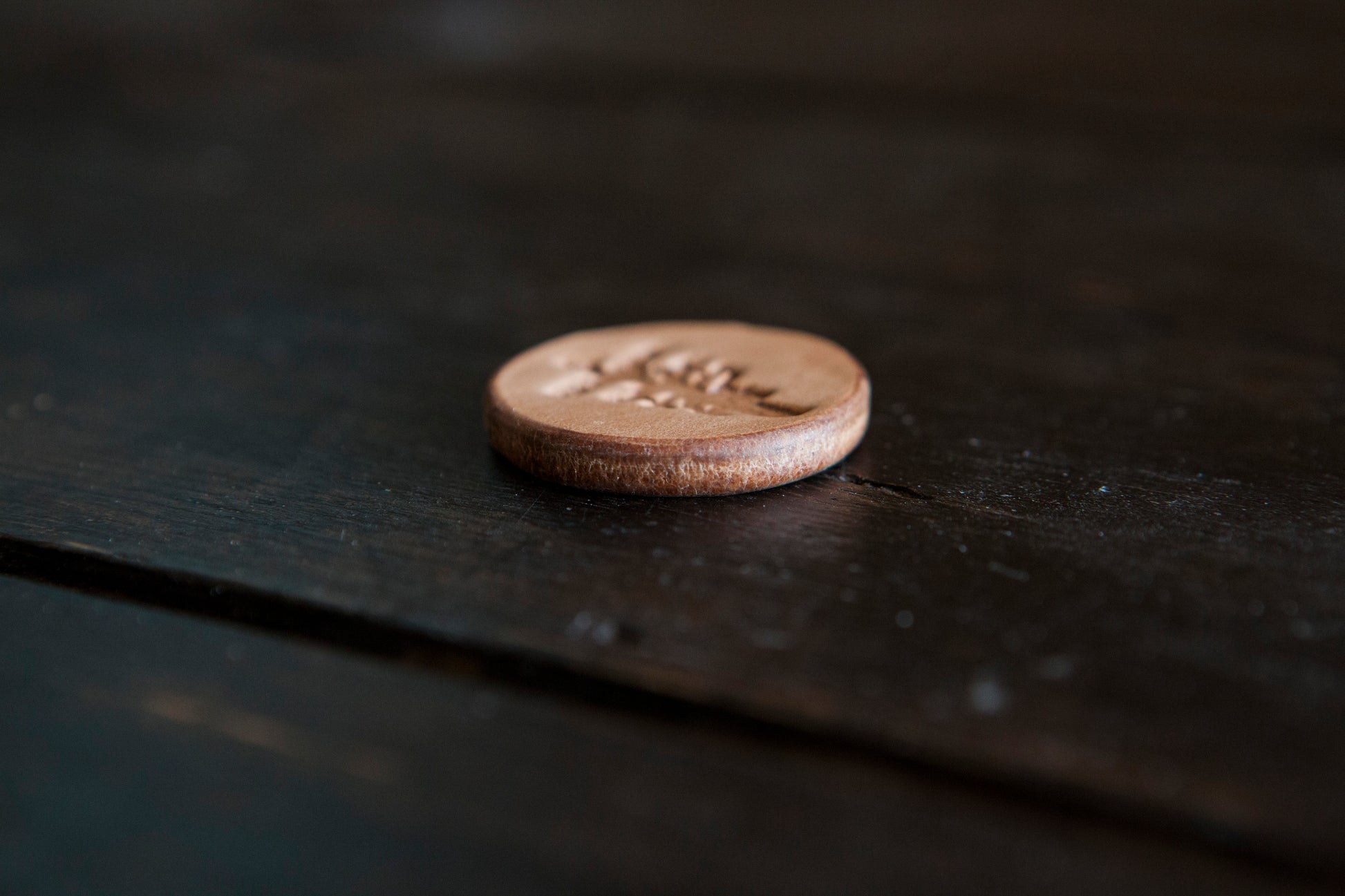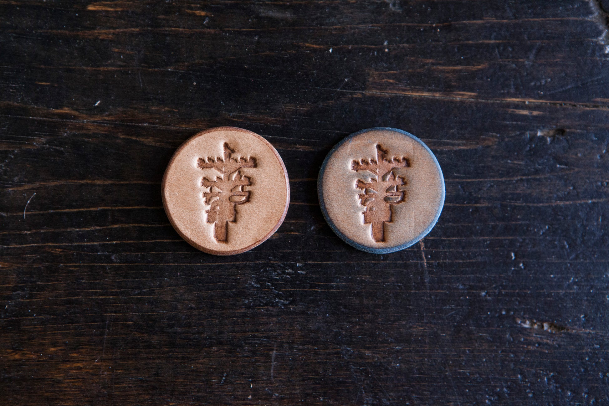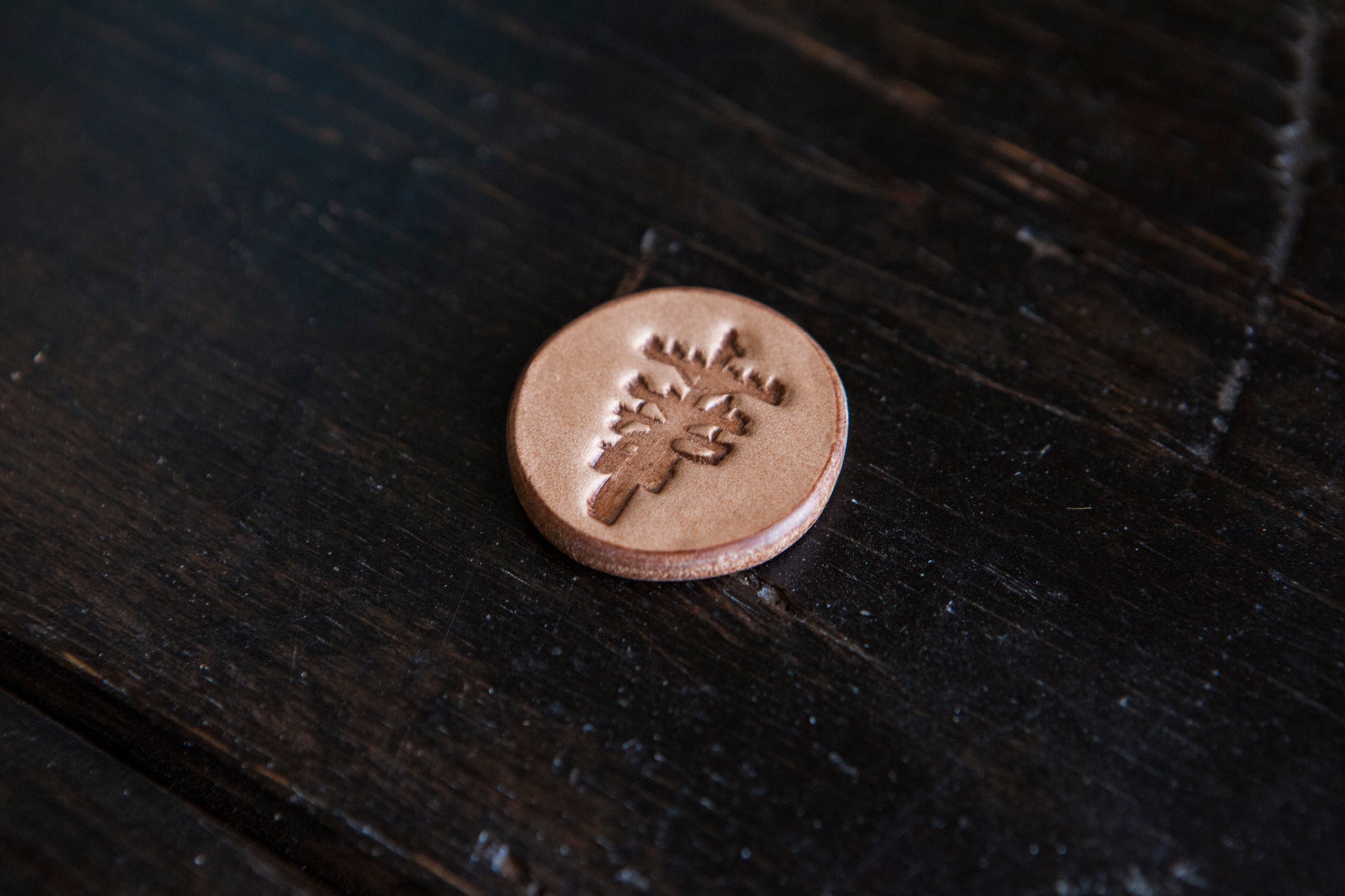 The current batch of tokens are being made with 14oz J&FJ Natural Oak Bark Bridle; the leather may change over time depending on my current supply. It will always be a leather with brilliant patina qualities, and I will always update the current leather offering here should it change.