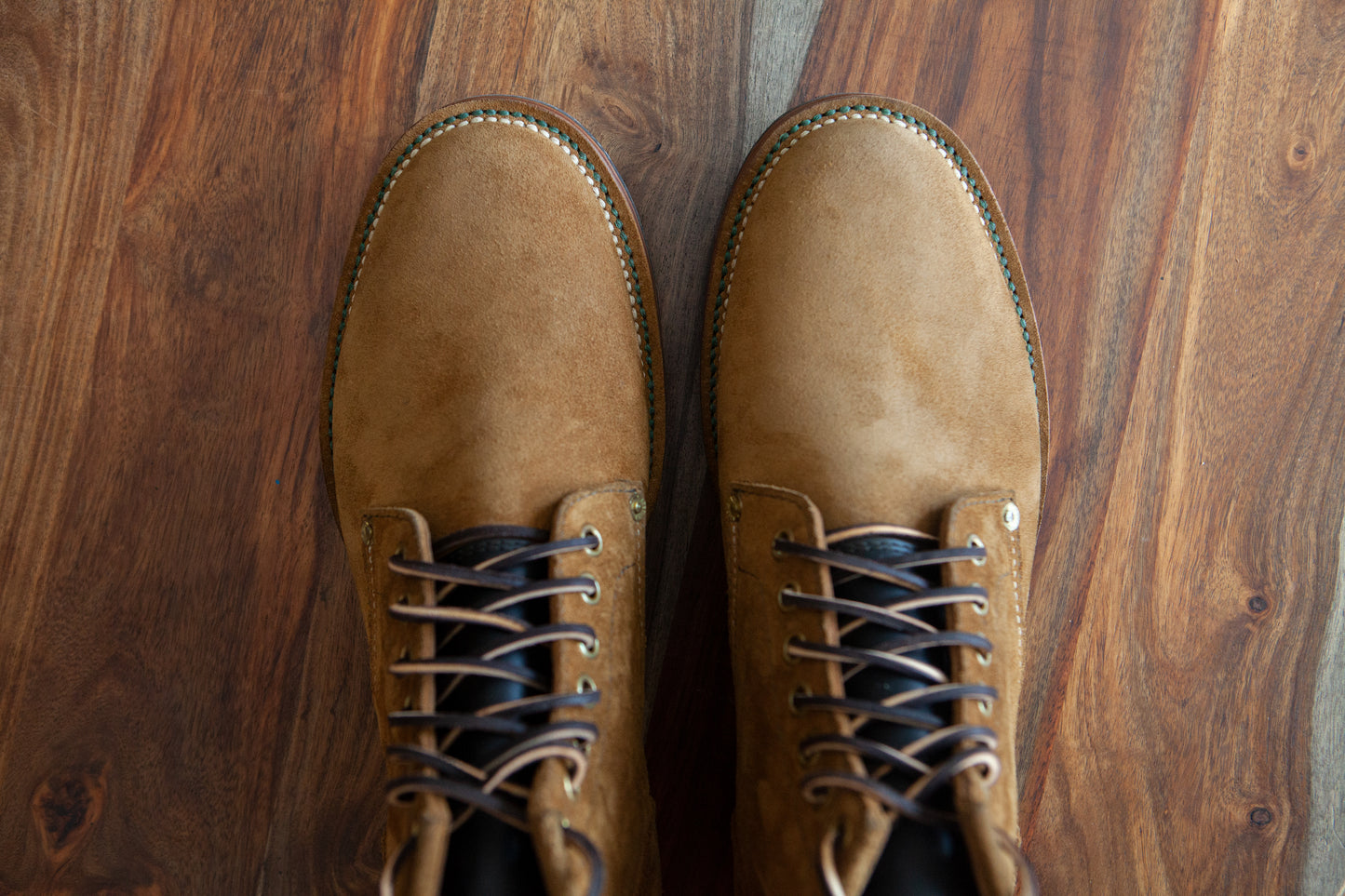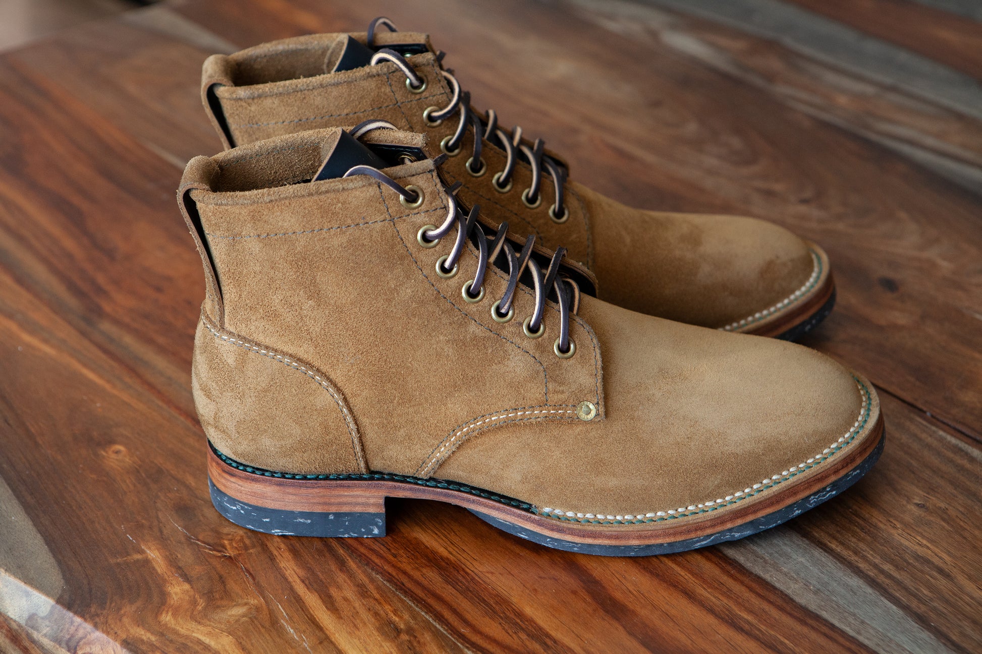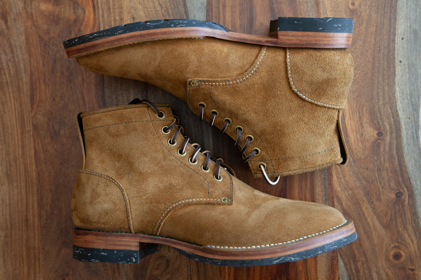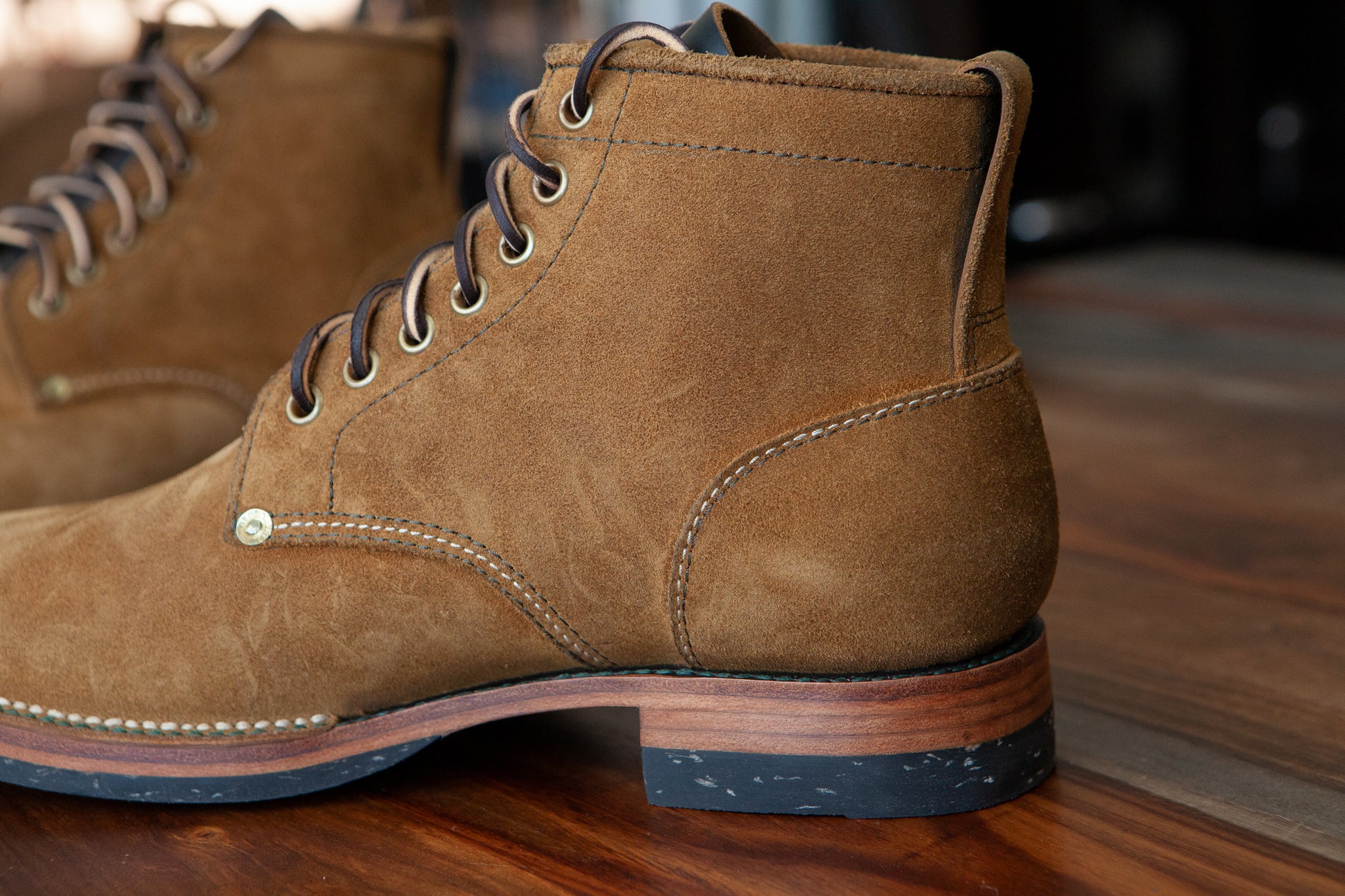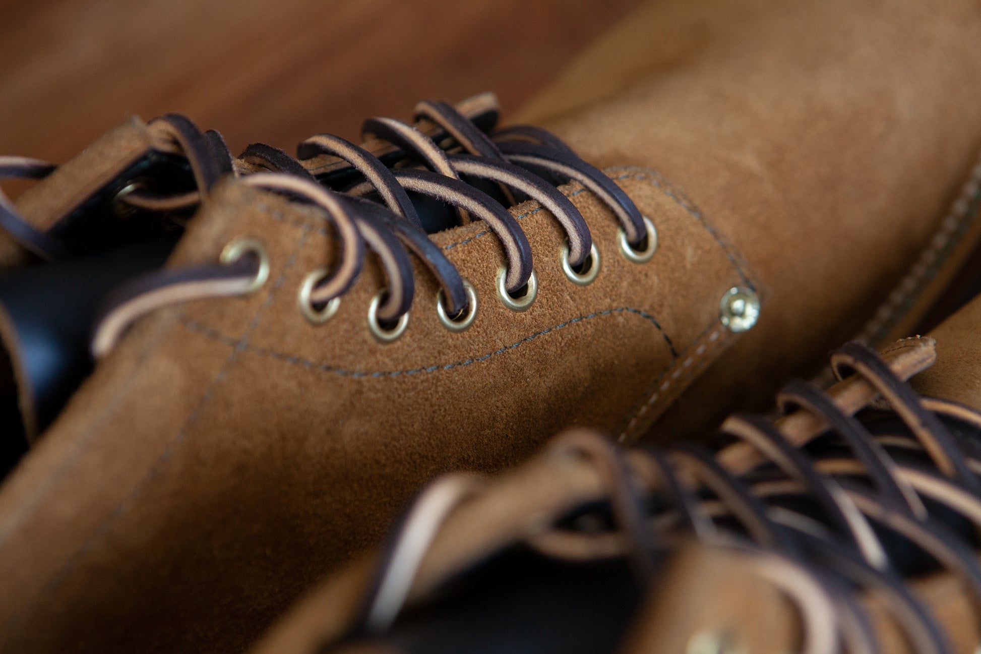 Following the release of Collab 5, The Black Klondike Teacore Service Boot, this release flips the leather inside out for what I believe to be a world first, a boot made with Roughout Black Klondike leather! This leather from the S.B. Foot tannery is renowned for its use by Red Wing in their limited edition releases.