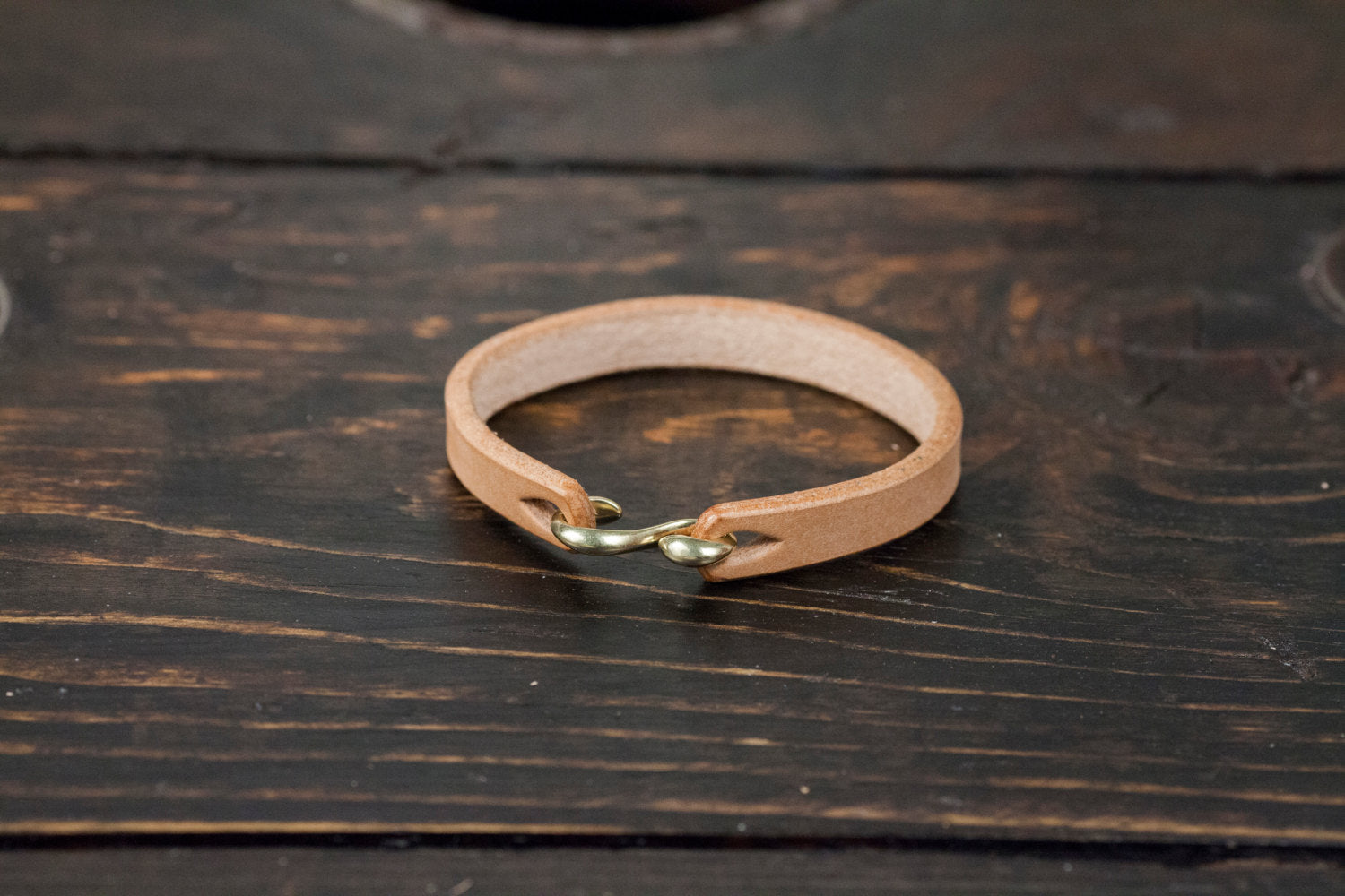 Natural Vegtan Leather Cuff- Brass, Copper or Nickel S Clasp