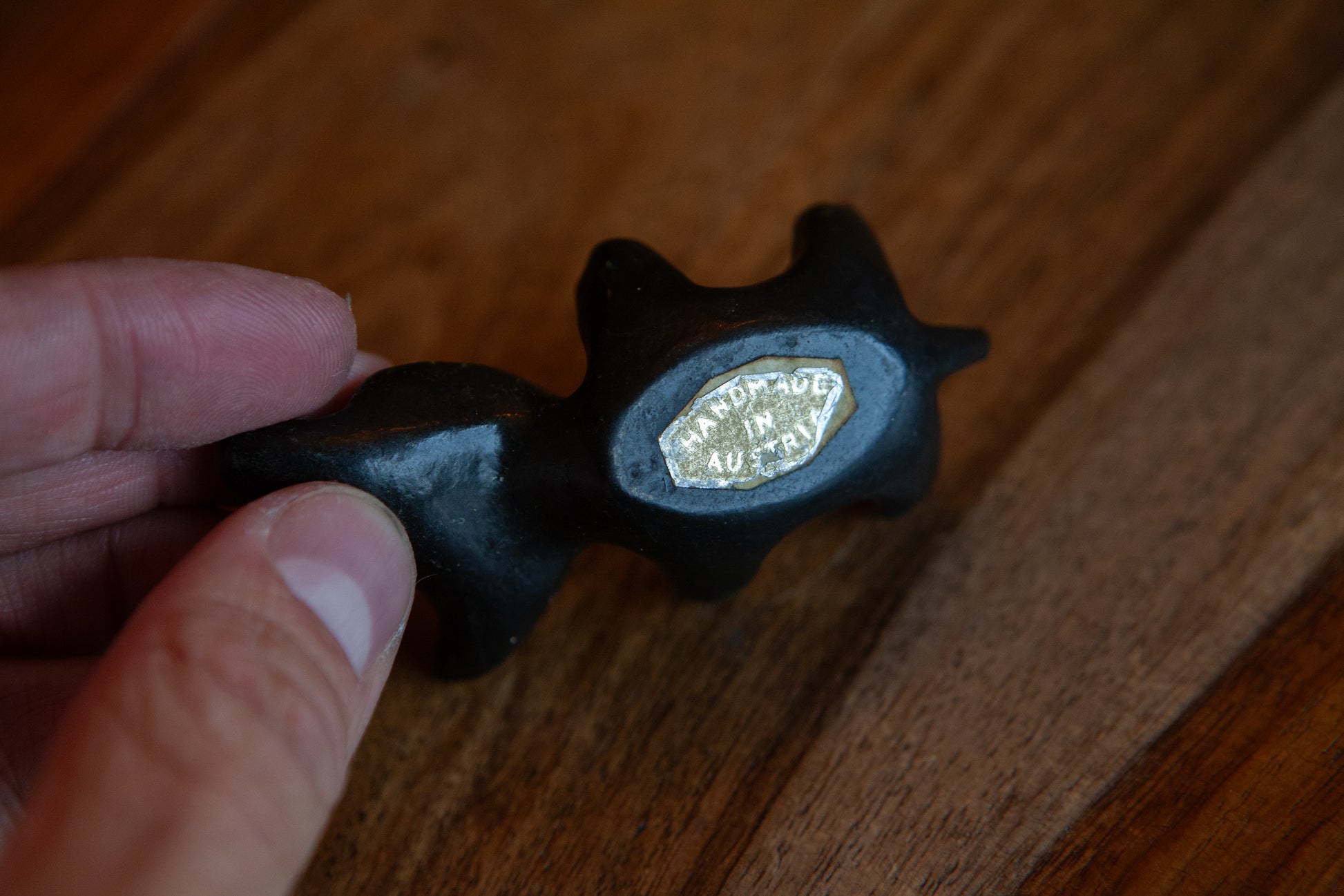 This little guy is too awesome. I've seen it used as either a pipe holder or an egg holder, but I personally think it looks best holding a pipe! Has a "Made in Austria" sticker on the bottom, which from my limited knowledge indicates that it is an older Bosse design, maybe from the 1940's.